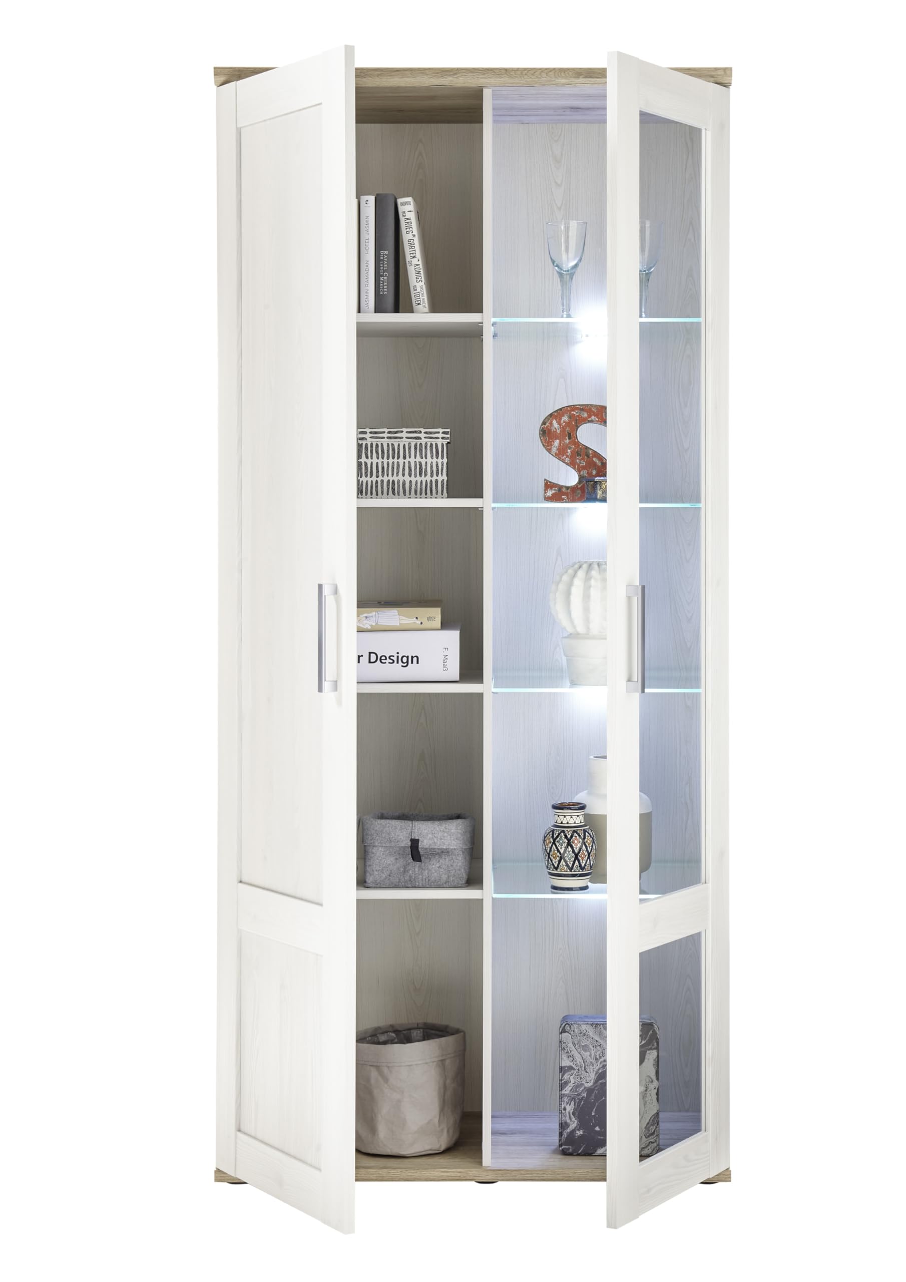 - HIGHLIGHT - Das Set sorgt für eine natürliche und warme Atmosphäre im Wohnbereich, auch aufgrund der schönen LED-Beleuchtung in der großen Vitrine. Andere Kombinationen sind natürlich möglich